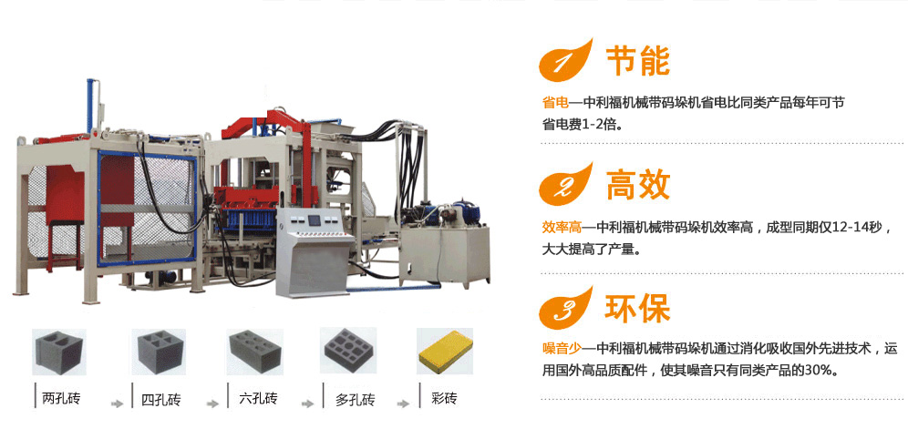技術決定品質—中利福機械有限公司經多年研發,國內首創多功能中型系列磚機,一機多用,既可生產不同規格型號的墻體磚,也可生產不同規格的路面磚,空心磚、護坡磚、灰沙磚、耐火磚等。